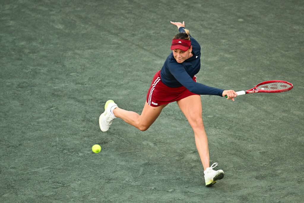 Now playing under the Uzbek flag, 22-year-old Polina Kudermetova was the first to capitalize, pushing aside Dutchwoman Eva Vedder, 6-3, 6-2, in one hour and seven minutes. Kudermetova’s older sister, Veronika, captured the Charleston singles title in 2021 (def. Danka Kovinic, 6-4, 6-2).
