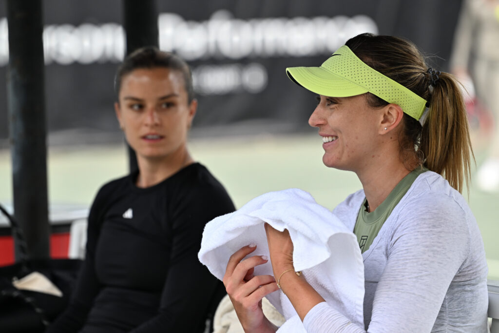 Paula Badosa and Maria Sakkari on the practice court.